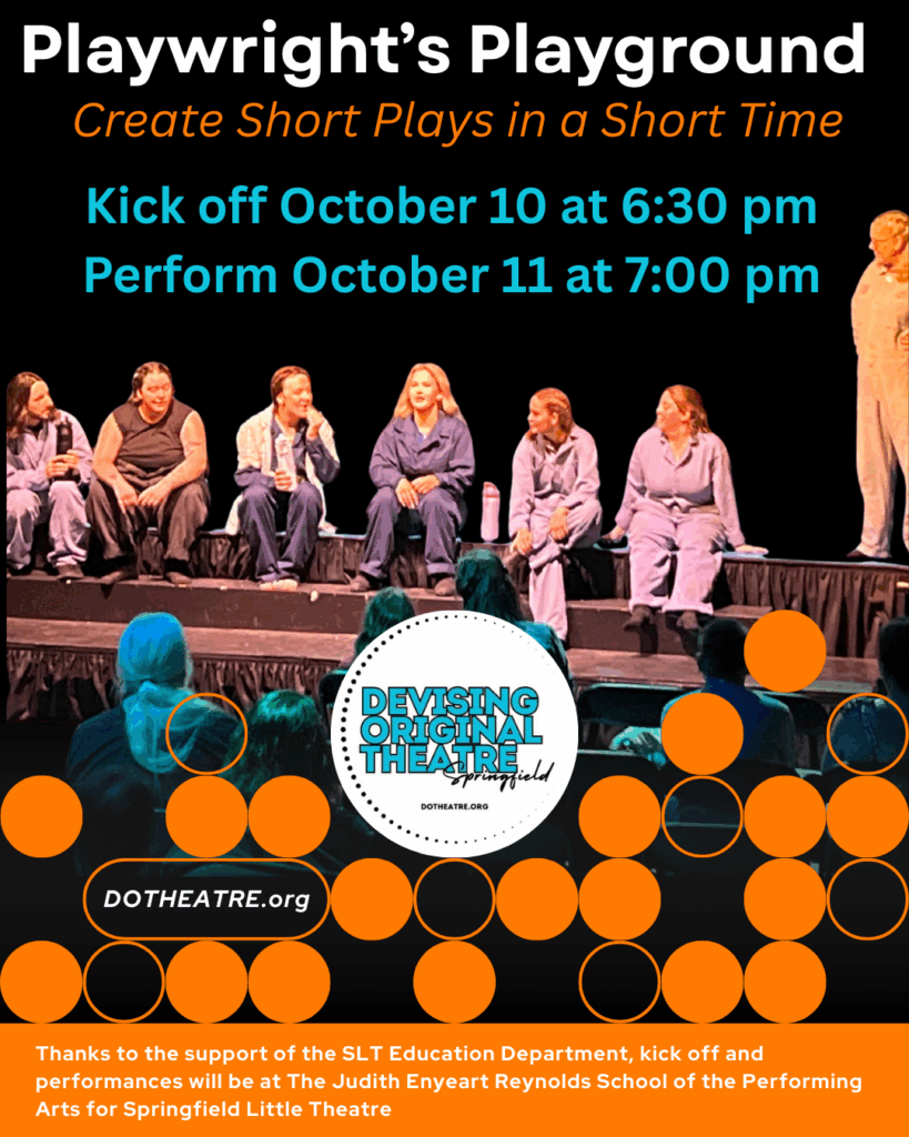 During the Playwright’s Playground, your team will create, write, rehearse, and perform an original piece of theatre inspired by the prompts revealed on Friday night. Performances will begin at 7 pm on the next day.